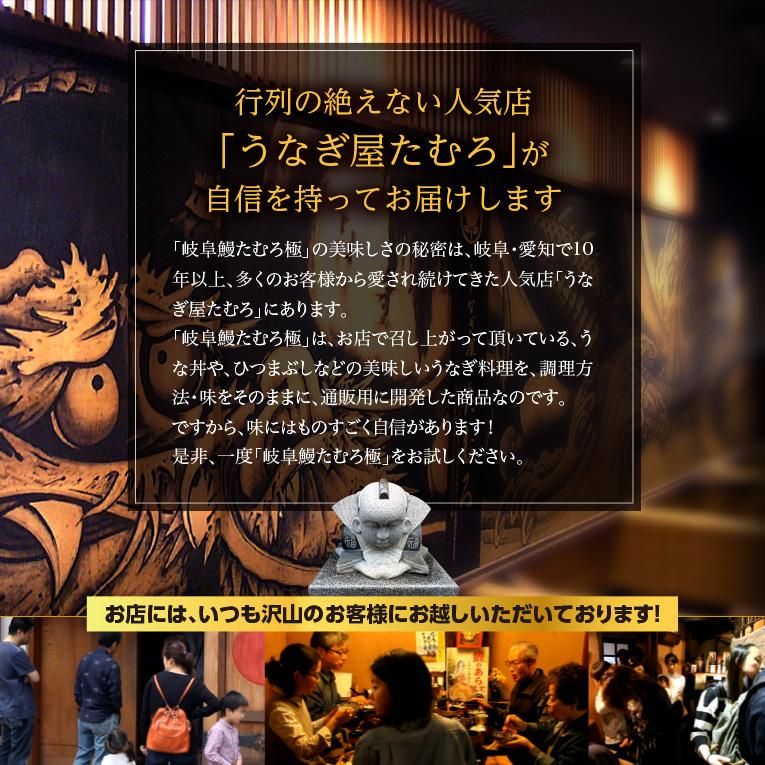 「たむろ極 幻のめすうなぎ艶鰻」のうなぎ蒲焼は、熟練した職人の手により一尾、一尾、丁寧に捌かれ、国産の高品質な炭火で焼かれています。たむろ秘伝の鰻タレと特選わさびでご堪能ください。